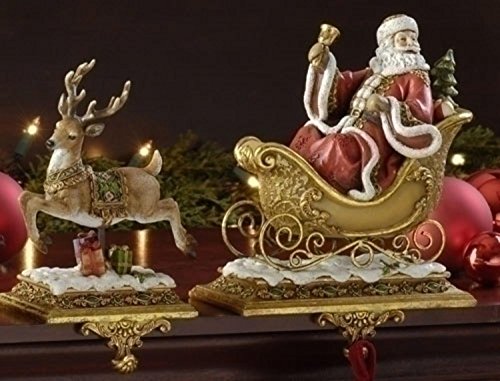 Set of 2 Joseph's Studio Santa Claus and Reindeer Christmas Stocking Holders