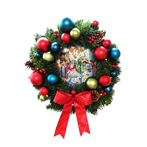 GKI 100028178 24" Pre-Decorated B/O LED Lighted Christmas Wreath with Nativity Center-Clear