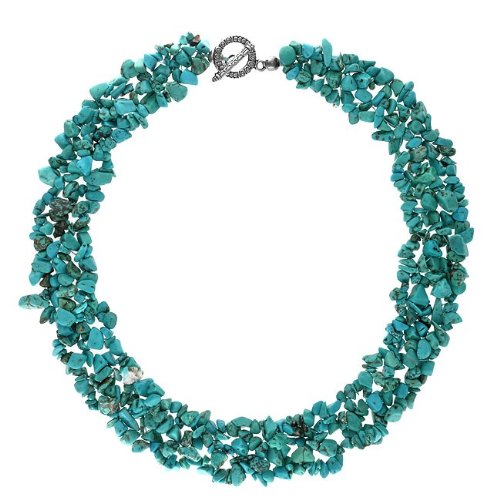 -. Title : Bling Jewelry Multi Strand Reconstituted Turquoise Chips Cluster Necklace and Bracelet Set Silver Plated