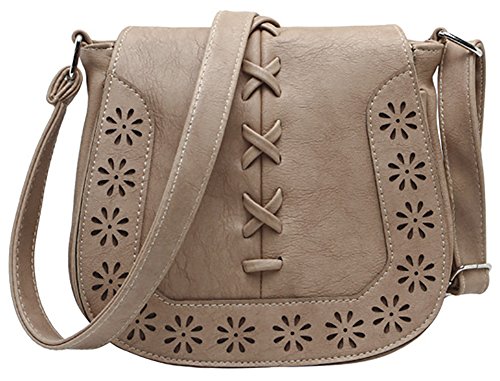 Women's PU Sanddle Bag Hobo Crossbody Shoulder Travel Purse with Hollow Lacing