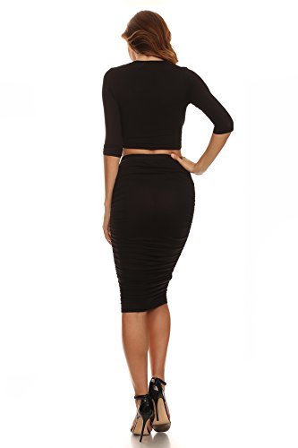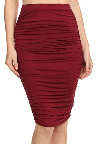 -. Feature : High Waist Midi Skirt / Ruched Side Detail / Bodycon Fit / 95% Rayon, 5% Spandex / Hand Wash Cold