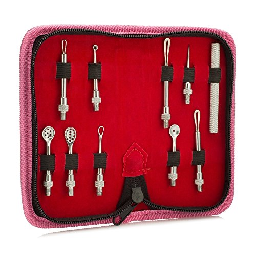 -. Feature : 10 piece extractor tools which includes spoon extractor tips, loop extractor tips and free bonus tweezers. / Easy-to-use and safe solution for your skin. / High-quality stainless steel construction ideal for professional and personal care. / Applications: Blemish, blackheads, whiteheads, acne breakouts, enlarged pores, comedones. / Black leather zipper case for easy storage and travel usage.