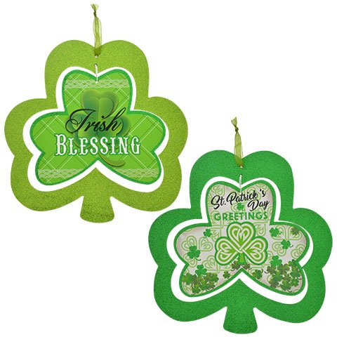 Glittering Shamrock Decorative Hanging Spinners (2ct.)