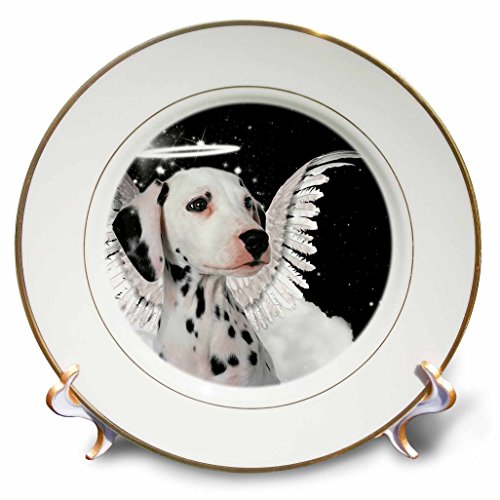3dRose cp_62895_1 Dalmatian Angel Dog with Clouds, a Cute Halo and Angel Wings-Porcelain Plate, 8-Inch