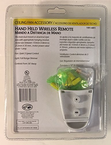 Add convenience to your seasonal comfort with the Hand-Held Remote Control. This remote is designed to control up to 16 fans using 16 separate code frequencies up to a range of 30 ft. It is compatible with fans equipped with either CFLs or incandescent bulbs, and has a 3-speed fan control for versatility. A battery is included for even greater value.