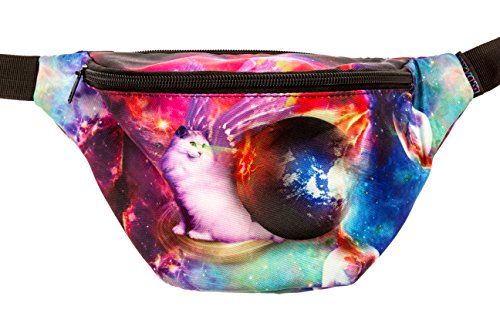 -. Brand : KANDYPACK -. Color : Multi -. Department : unisex -. EAN : 0716073412427 -. Feature : Cat in space shooting laser from its eyes / 2 zippered compartments / 1 hidden pocket on the inside / Great for raves, festivals, hiking, and outdoor activities / Fits size 28-40 inch waist -. ProductGroup : Apparel -. ProductTypeName : LAGE -. Size : Medium -. Title : KANDYPACK Galaxy Laser Cat Fanny Pack Perfect for Raves and Festivals -. UPC : 716073412427