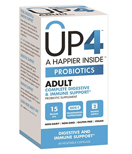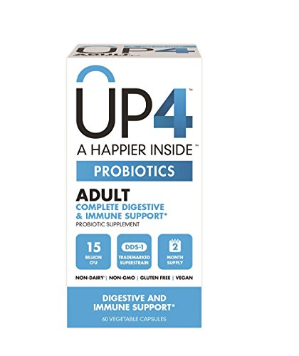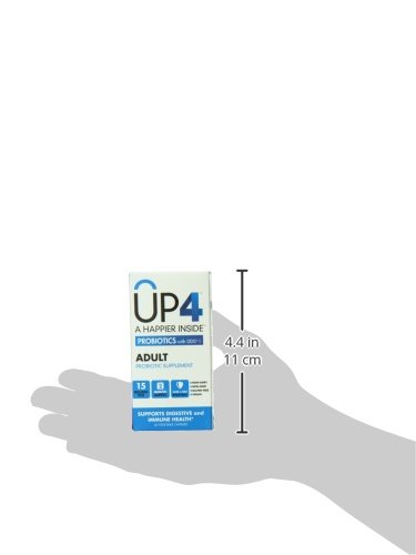 ReleaseDate : 2015-07-16 Studio : Up4 Publisher : Up4 Binding : Health and Beauty Product Description Up4 the Key to Inner Happy? Potent, prvoen probiotic strains that help balance your body's internal flora. 15 billion CFU. 4 premium strains. Non-dairy. Non-GMO. Gluten Free. Soy Free. Preservative Free. Vegan. Not All Probiotic Strains Are Created Equal. Exceptionally resilient, scientifically validated superstrains like Lactobacillus acidophilus DDS-1 are the base for our formulas. Our selected live cultures are proven to naturally withstand stomach acid and bile without the need for chemical coatings. This statement has not been evaluated by the Food and Drug Administration. This product is not intended to diagnose, treat, cure or prevent any disease. 0