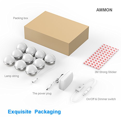 ⭐️EASY TO INSTALL: Come with strong adhesive 3M sticker for each light bulb. Just peel and stick to the mirror,mirror frames or wall. It is very easy to put on. NEVER FALLING OFF. Plug and play with the included safe 12V power supply, no need wiring.