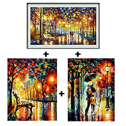 Kisstaker DIY Cross-stitch Lighting Scene Diamond Painting Sticker Kits Arts Crafts Pack of 3(15.5x10.5"+16.5x19.5"+12.5x16.5")