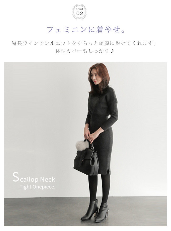 ニットワンピース ロング スリット タイト スカラップ |