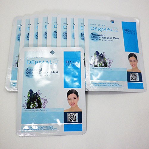 -. Feature : Dermal Korea Collagen Essence Full Face Facial Mask Sheet Pack No.11 Seaweed 10pcs / No.11 Seaweed - Moisturizing,Mild, Refining / Dermal Seaweed Collagen Essence Mask is a new essence mask which specially formulates cosmetics to penerate highly concentrated active ingredients into the skin while keeping air out of the skin completely thus, it makes your tired skin mositened, elastic, clear and relieves your skin from stress / Skin Confidence with Dermal makes you beautiful and healthy / Made in Korea