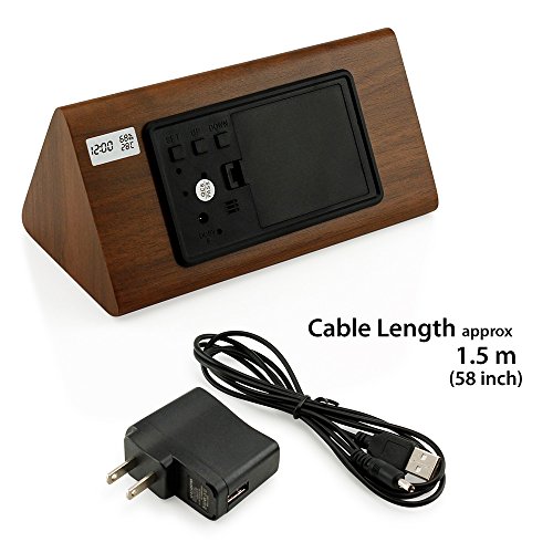 Studio : Oct17 Publisher : Oct17 Binding : Kitchen Product Description Add a touch of modern to your bedroom, living room or office with this sleek and elegant looking voice control eco-friendly alarm clock that matches perfectly with any modern designed office or home furniture. Designed for simplicity, there are no buttons or plastic parts on the front and sides of the clock. It displays time, date, humidity and temperature clearly with bright and adjustable LED lights for a clean yet modern look. And for your convenience, you can set up to 3 alarms in a few minutes intervals to replace the snooze function. Dual power mode: can be plugged in via USB cable (included), or backed up by 4 AAA batteries (not included). 0