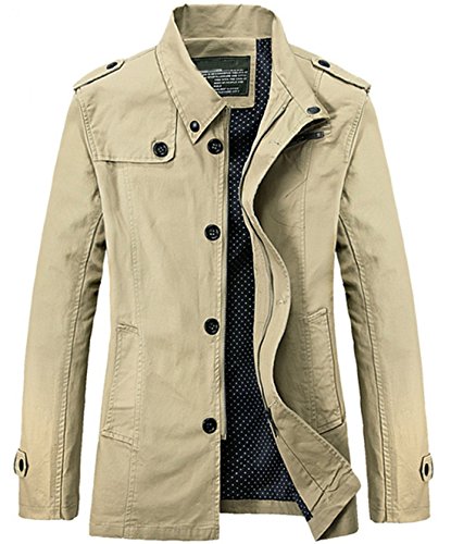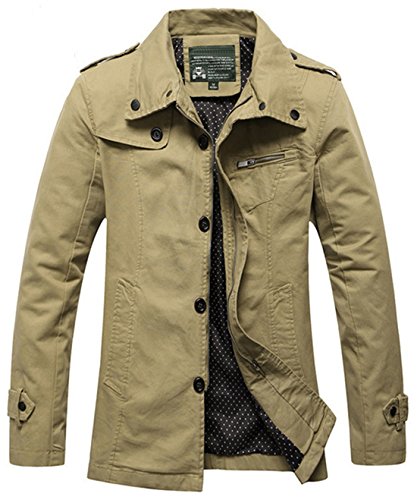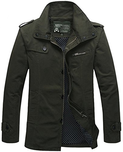 KIWEN Men's Cotton Stand Collar Zipper Windbreaker Jacket
