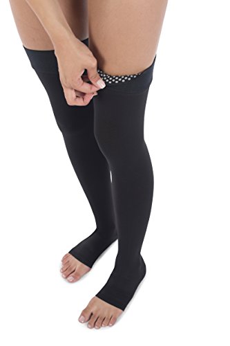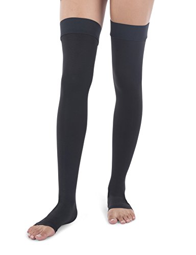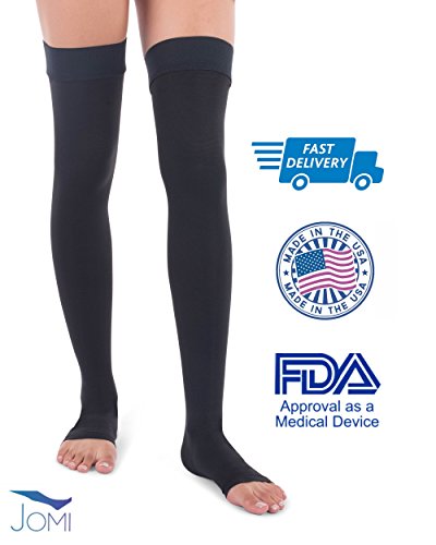 Jomi Surgical Collection 241, Medical Weight Compression Thigh Highs, 20-30mmHg - Open Toe (Medium, Black)