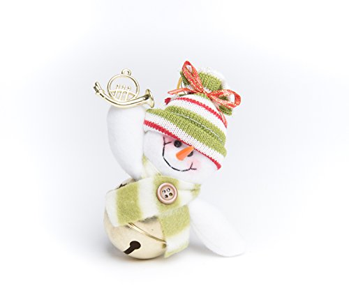 - LIVEN UP YOUR HOME WITH THIS CUTE JINGLE BELL SNOWMAN HANGING ORNAMENT THAT IS SURE TO BRING JOY TO FAMILY AND FRIENDS - This fun and festive ornament includes hand woven snowman adorned with a hat and scarf holding a gold little trumpet and attached to a gold bell.