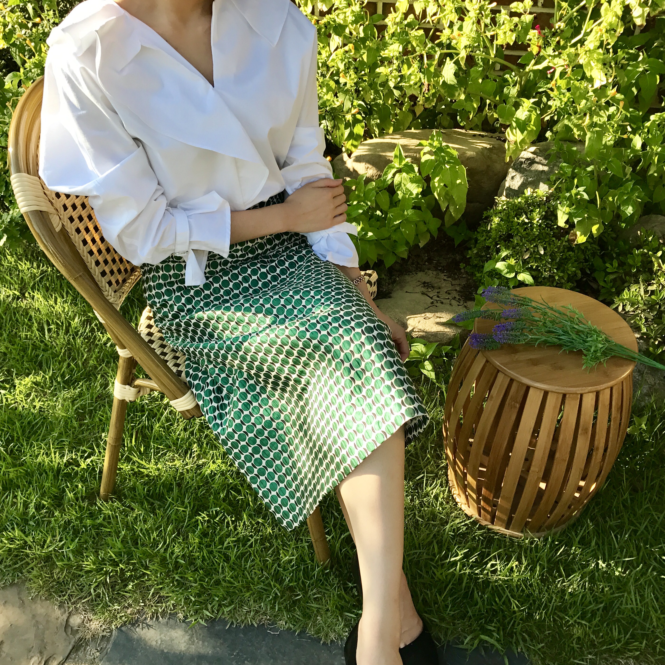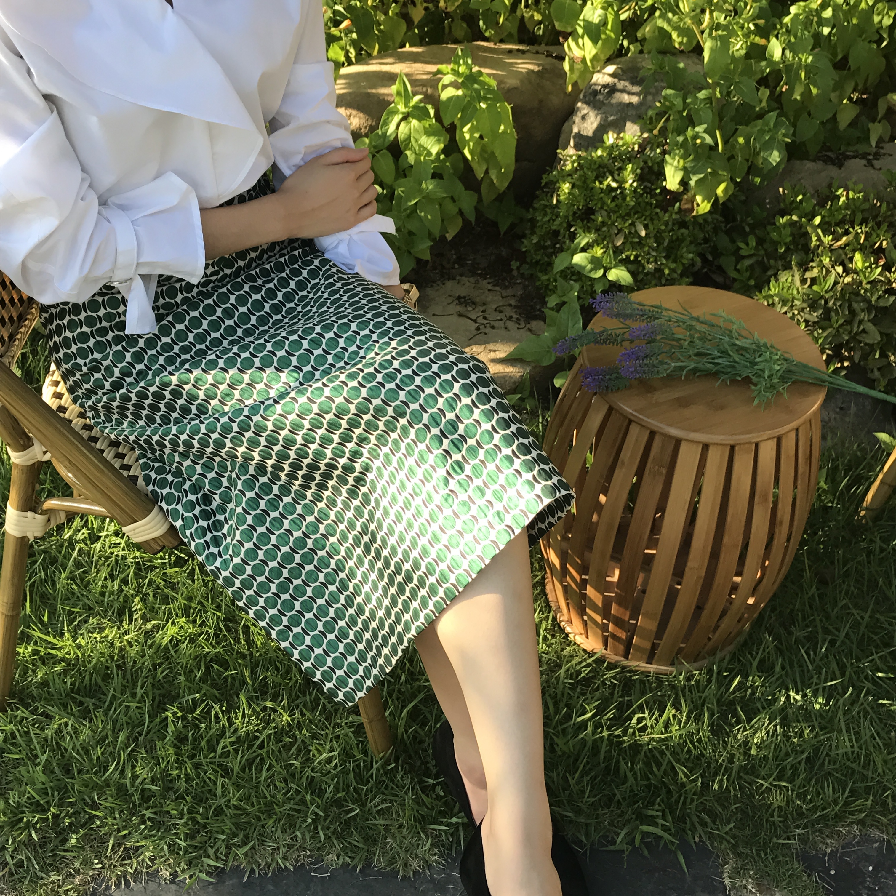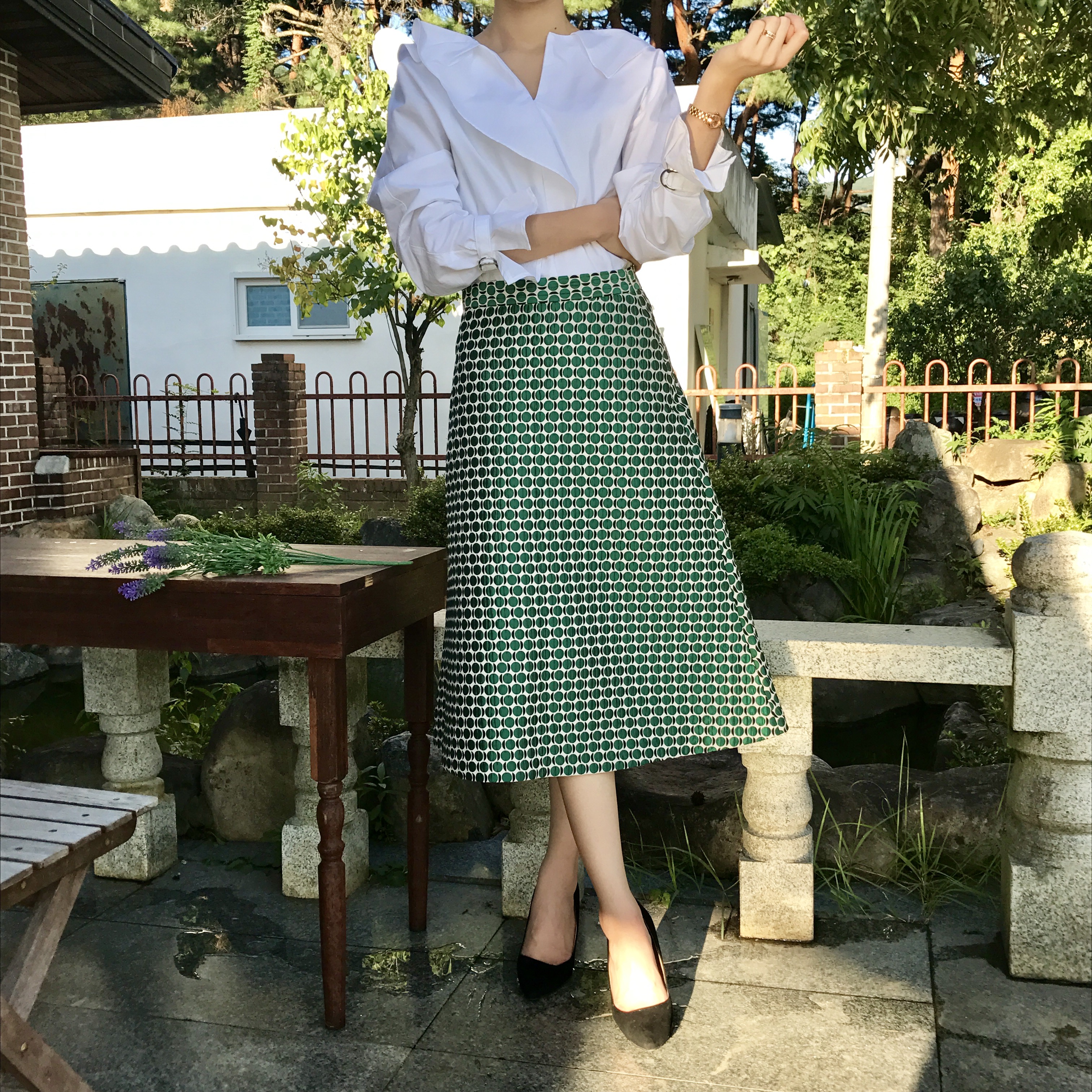 A line autumn dot long skirt 2color lovely date look 20s woman casual
