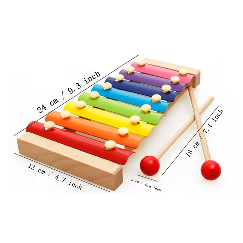 The babies like having objects of the sound, it feels very helpful to beat and take exercises to baby's limbs, can train hand eyes to coordinate ability at the same time. The lovely and unique xylophone has 8 kinds of different scales separately, it is made of pure wood, the music is clear and melodious, the sound is energetic. Let children develop child's potential artistic cells during the process of beating the xylophone, add the happy sense, thus achieve the purpose of studying general knowledge of the music.