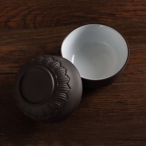 -. Title : 4pcs 40ml Chinese Yixing Zisha Lotus Dark Brown Glazed Clay Teacup Bowl-cup Cup Tea Set