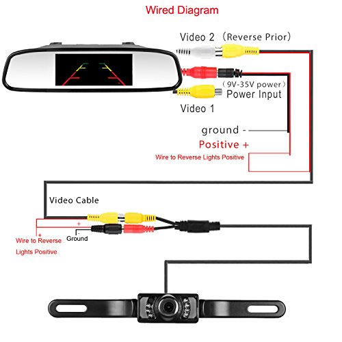 - Monitor have V1/V2 two video inputs, V2 has priority, so normally the rear view camera wire to V2, you can wire another front/side camera to V1, when you driving, you can view front by V1,when you turn on reverse and off, the V2 will working automatically on and off too.