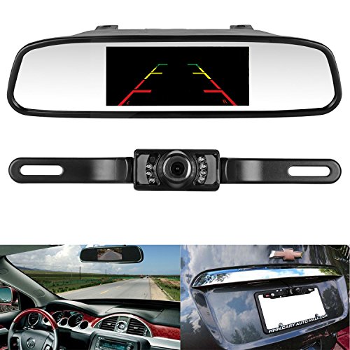 ZSMJ Backup Camera and Monitor Kit,4.3" Car Vehicle Rearview Mirror Monitor for DVD/VCR/Car Reverse Camera + CMOS Rear-view License Plate Car Rear Backup Parking Camera With 7 LED Night Vision