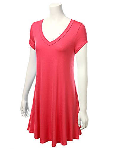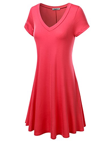 J.TOMSON Womens Short Sleeve V-neck Flared Tunic Dress
