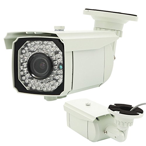 -. Feature : Waterproof housing, ideal for outdoor uses; Built-in IR-CUT filter shows true colors day and night; 66 infrared LEDs ensure its high performance even in the dark; Zooming lens offers adjustable focus from 2.8mm to 12mm; Sleek and compact design, easy to install / Horizontal Resolution: 1300 TV Line; Minimum Illumination: 0.01 Lux / F1.2; S/N Ratio: More than 50dB; Scanning System: 2:1 Interface / Synchronous System: Internal, Negative Sync.Auto Electronic Shutter NTSC: 1/60s~1/100,000s;Gamma Characteristic: 0.45 / IR Distance: 196 Feet (with ¢5X64PCS Infrared LED); IR Status: Under 5 Lux by CDS; / Video Output: 1Vp-p, 75Ω;Day and Night Switch: ICR Switch;Power Current: DC12V(+/-10%)/430mA;Lens: 2.8~12mm Manual Varifocal Lens