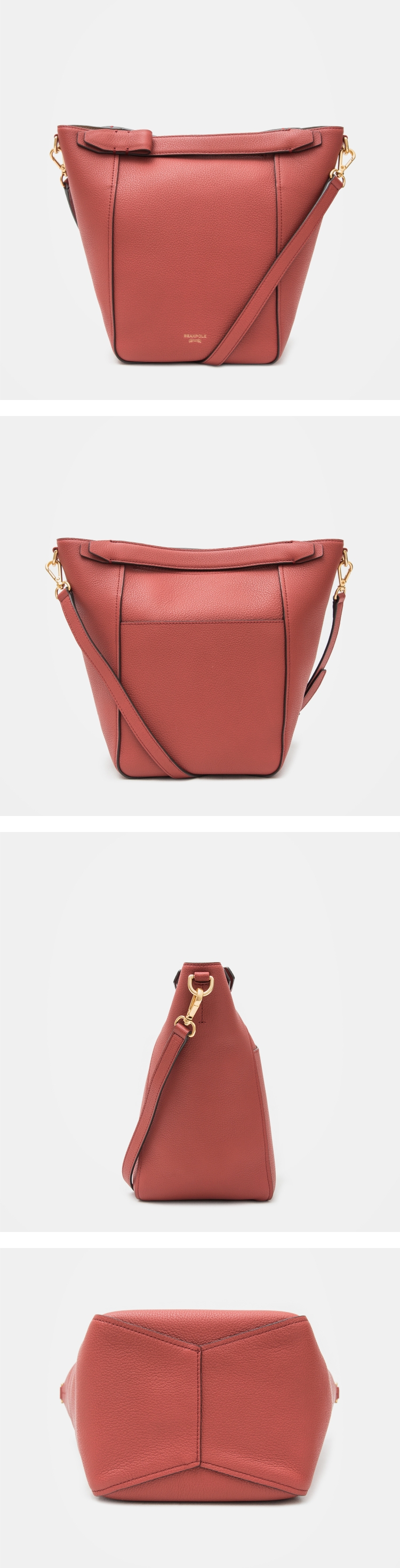 -양면가죽을 사용하여 안감이 없는 스타일로, 무게가 가볍고 내부 수납공간이 넉넉하여 실용적인 트렌디한 스타일을 선호하는 3,40대 여성고객이 타겟인 아이템입니다.