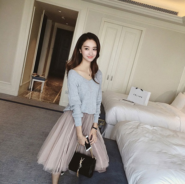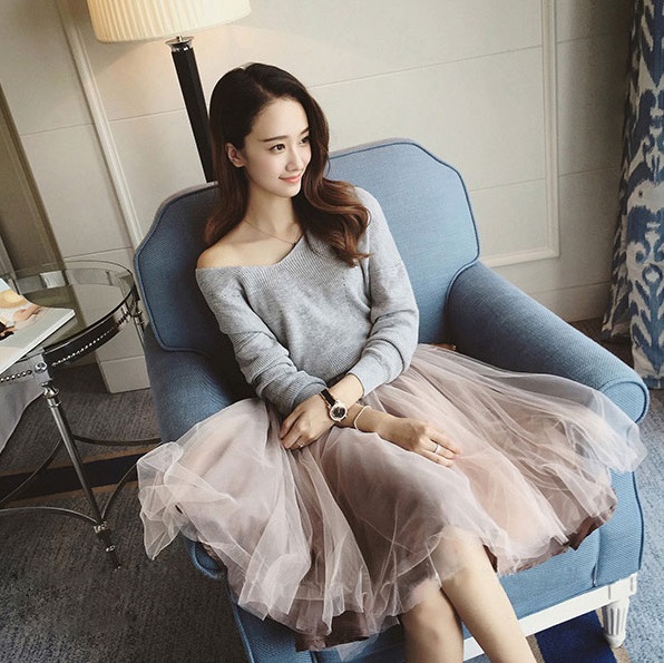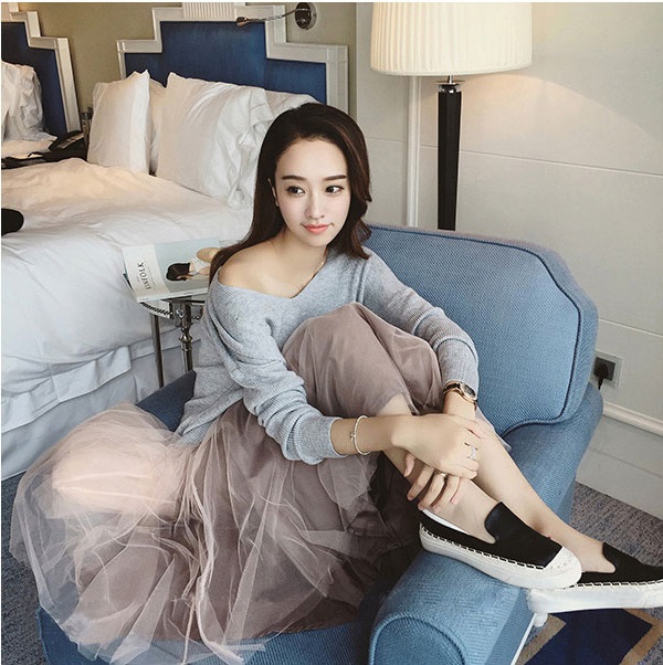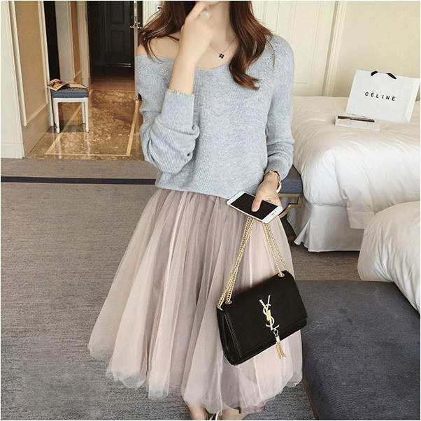 カジュアルなアイテムも女性らしく演出してくれるチュールスカート。
