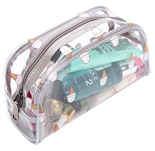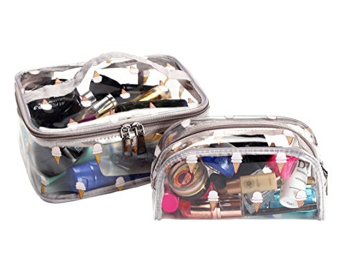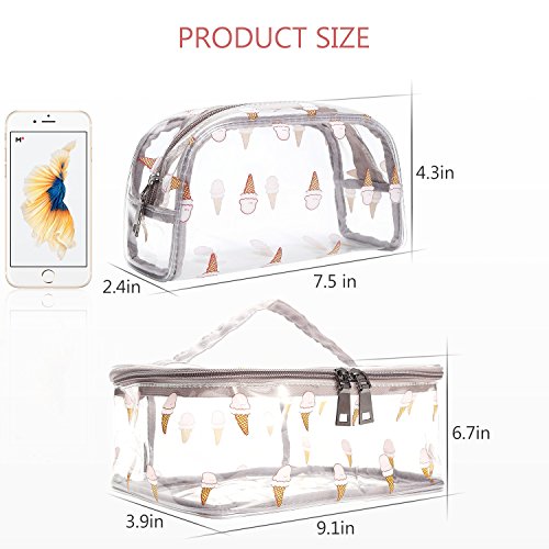 HOYOFO Clear Makeup Bags Waterproof Cosmetic Toiletry Bag Travel Storage Case, Pack of 2 (Ice Cream)