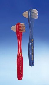 Studio : Lactona Publisher : Lactona Product Description Lactona Denture Brushes #500 - short handle 4.5" Lactona Denture Brushes have firm nylon bristles and a wide handle to ensure a thorough cleaning while being easy to grip firmly. The flat side of the denture brush is designed to clean the denture teeth and flat surfaces, while the extra long tapered side is suited for cleaning the ridge of the denture. 0