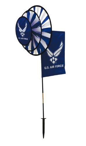- In The Breeze Item #2878 - U.S. Air Force Wings Dual Spinner Wheels with Flag Garden Spinner is made with durable polyester fabric that is stain, UV and weather resistant.