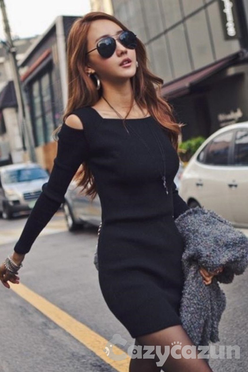 Men are crowded, sexy shoulder-out, mini-length tight dress.