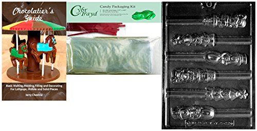 Cybrtrayd X-Mas Pretzel Top Assorted Chocolate Mold with Chocolatier's Bundle of 25 Cello Bags, 25 Red Twist Ties and Chocolatier's Guide