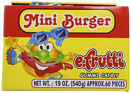-. Feature : E-Fruitti Gummi Burgers (60 ct) / Delicious Gummi Hamburgers. 60 individually wrapped pieces per box. / Great novelty candy item / Perfect for pinata candy and candy dishes too