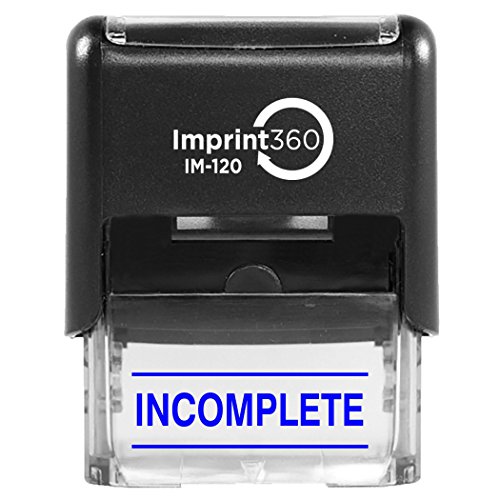 Imprint 360 AS-IMP1146B INCOMPLETE with Upper and Lower Bars, Blue Ink, Heavy Duty Commercial Self-Inking Rubber Stamp, 9/16" x 1-1/2" Impression Size