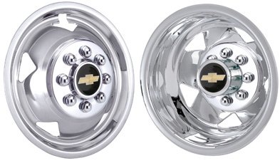Studio : Jae Enterprises, Inc Publisher : Jae Enterprises, Inc Product Description Chrome Plated Stainless Steel Wheel Simulators to fit 2011-2012 Chevrolet Silverado 3500 dually. The only wheel simulators Officially Licensed by GM. Fits 17' 8 Lug steel wheels with 5 triangular vent holes. Comes as a set of 4 with 2 fronts and 2 rears. All mounting instructions, installation tool, and hardware included. 0