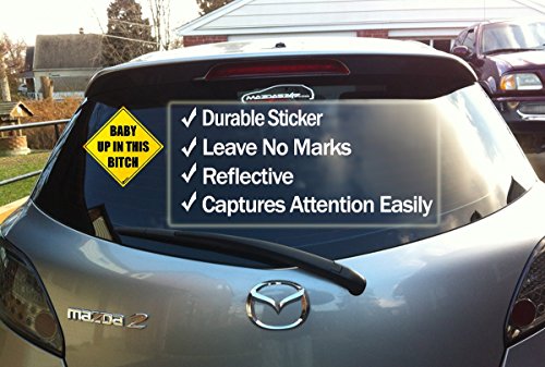 ✺ CAPTURES ATTENTION - The Zento Deals "Baby up in This Bitch" reflective Bumper Sticker is a flashy color that attracts people's attention easily. Letting the nearby vehicles know to be careful and drive slowly because there is a baby inside the car. /