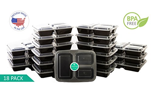 Meal Prep Containers| 3 Compartment | USA Made | Bento Box | 18 Pack Food Storage Lunchbox