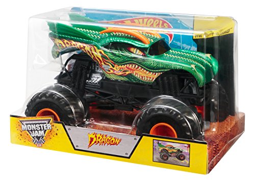 -. Binding : Toy -. Brand : Hot Wheels -. EAN : 0887961062441 -. Feature : With even more accurate designs, this 1:24 scale truck is made with durable die-cast metal parts / Decorated just like its high-flying, car-crushing, oversized inspiration / Its monster wheels are ready for mega tough terrains, too! / Pick up the other vehicles in the assortment and head to the Monster Jam arena for head-to-head battle! / Who will dominate and who will be destroyed -. IsAdultProduct : 0 -. Label : Mattel -. LegalDisclaimer : Must be at least 18 & over to purchase -. Manufacturer : Mattel -. Model : CGD65 -. MPN : CGD65 -. NumberOfItems : 1 -. PackageQuantity : 1 -. PartNumber : CGD65 -. ProductGroup : Toy -. ProductTypeName : TOYS_AND_GAMES -. Publisher : Mattel -. Studio : Mattel -. Title : Hot Wheels Monster Jam 1:24 Scale Dragon Vehicle -. UPC : 887961062441 -. Warranty : 1 year warranty against manufacturer defects