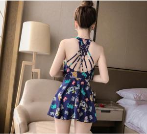 水着 夏 プール ビーチ ナイトプール ワンピース フレア バックデザイン 柄 アニマル 漫画 ホルターネック ショートパンツ