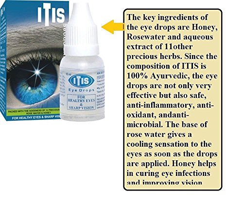 -. Feature : Item: 100% Herbal and Natural 2X ITIS EYE DROPS WITH ROSE WATER BY OZONE AYURVEDICS 100% NATURAL 2x10ml=20ml Enriched with 11 precious herbs and rose water, the eye drops promise relief from irritation and infections along with long-term benefits of sharper vision and healthier eyes. ITIS Eye drops refresh red, tired eyes; these herbal eye drops irrigate and revitalize tired eyes, lubricate sensitive eyes and give relief to red and uncomfortable eyes resulting from smoky environments, computer work and contact lens wear.ITIS Eye drops are extremely effective in cases of burning, allergic conjunctivitis, general irritation or tired eyes. The key ingredients of the eye drops are Honey, Rosewater and aqueous extract of 11other precious herbs. Since the composition of ITIS is 100% Ayurvedic, the eye drops are not only very effective but also safe, anti-inflammatory, anti-oxidant, andanti-microbial. The base of rose water gives a cooling sensation to the eyes as soon as the drops are applied. Honey helps in curing eye infections and improving vision. The refreshing, soothing and calming qualities of the herbs relieve redness caused by environmental elements such as wind, sun, dry air (air-conditioning and central heating), smoke, excessive light, sports or visual fatigue due to long periods using a computer.They are ideal for young adults and working professionals who spend prolonged hours in front of computer screens. The drops help inreducing Strenthens eye muscles Herbal Ayurvedic It is Eye Drops Powerful Eye Tonic,Antiseptic Non-Irritant 2 x 10 ML =20ml Powerful Eye Tonic, Antiseptic and Non-Irritant Sterile Solution Protects the eyes from all pollutions and adverse environment of modern life, like dust, excessive heat, fumes, smoke, etc. / 00% Herbal and Natural 2X ITIS EYE DROPS WITH ROSE WATER BY OZONE AYURVEDICS 100% NATURAL 2x10ml=20ml Enriched with 11 precious herbs and rose water, the eye drops promise relief from irritation and infections along with long-term benefits of sharper vision and healthier eyes. ITIS Eye drops refresh red, tired eyes; these herbal eye drops irrigate and revitalize tired eyes, lubricate sensitive eyes and give relief to red and uncomfortable eyes resulting from smoky environments, computer work and contact lens wear.ITIS Eye drops are extremely effective in cases of burning, allergic conjunctivitis, general irritation or tired eyes.