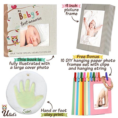 Uliels Baby Keepsake Set with Memory Book, Footprint, Box Frame & Hanging Frames. Ideal for Boys and Girls Baby Shower Gift