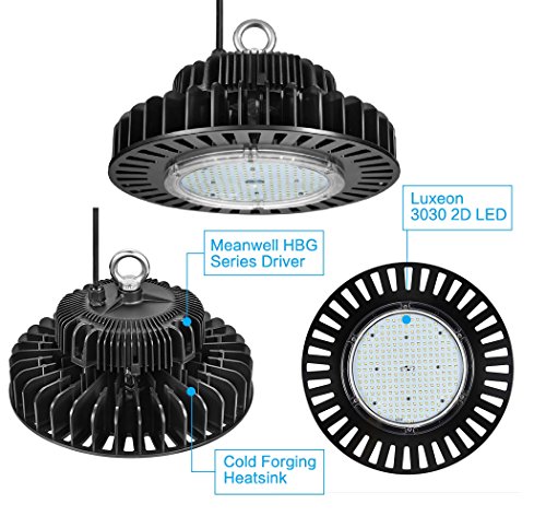 DURABLE - Meanwell HBG series driver and Luxeon 3030 LED make the LED high bay light fixtures durable without quality headache. With an expected lifespan of 50,000 hours, the LED light will reduce costs for maintenance