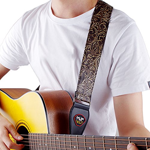 -. Feature : Stay cool with the classic style & vintage finish / Works perfectly on acoustic guitar, electric guitars,bass, an extra string included. / Durable 2" width soft PU guitar strap provides great comfort on your shoulder for standing situations / Adjustable length from 37.4"(95cm) to 61.8"(157cm) (including the leather ends) to suit different size of your instruments. / 100% satisfaction guarantee. No return reasons asked, 100% money back .
