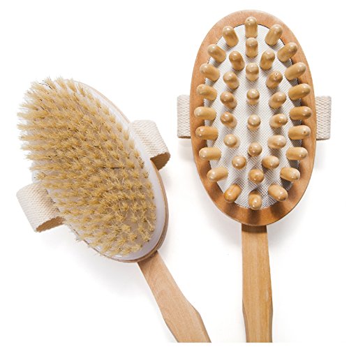 The dry skin body brush - Ideal for dry skin brushing. Made with high quality natural boar bristles with perfectly curved cut and medium firmness- not too hard, yet not too soft for your skin. Detachable 16.5" Long reaching handle to comfortably reach any spot on your back. Perfectly curved handle which won't fall off easily. Great as a back brush as well.