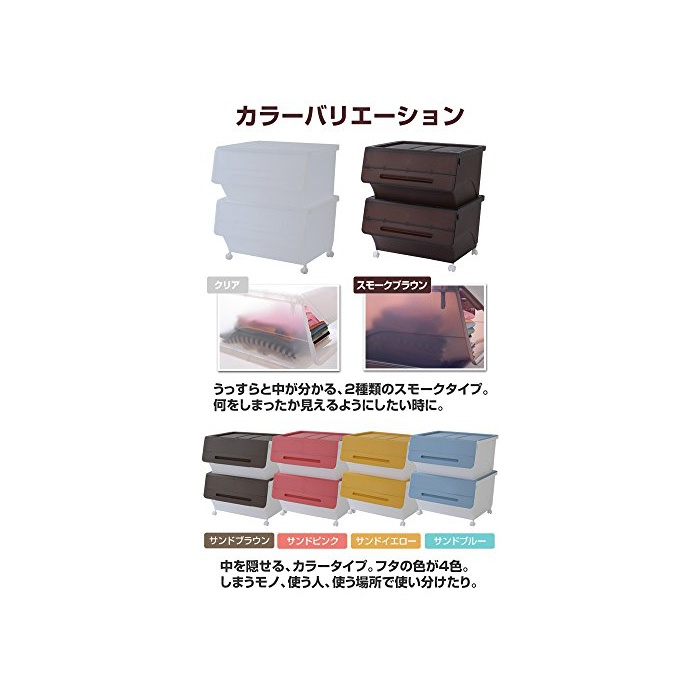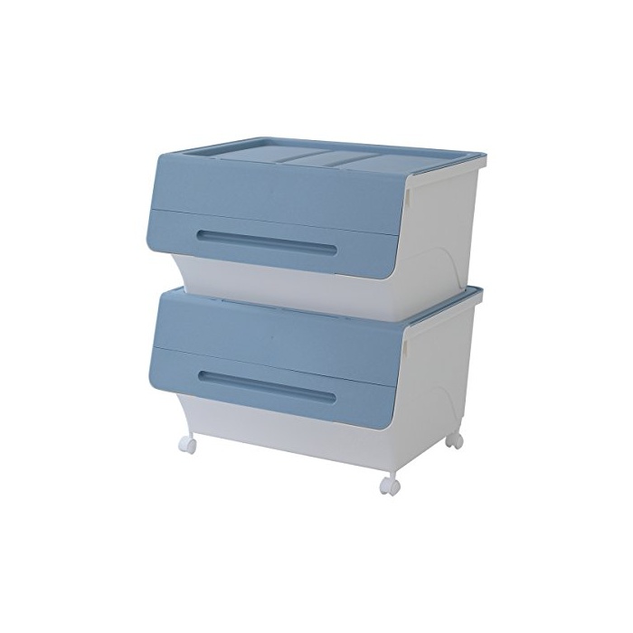 야마젠(YAMAZEN) 오픈 박스 뚜껑 부착 수납 박스 2 개조심형 와이드 캐스터 부착 샌드 블루