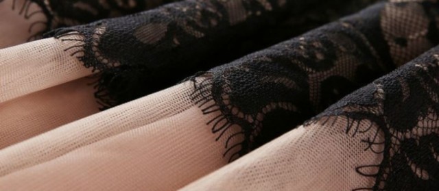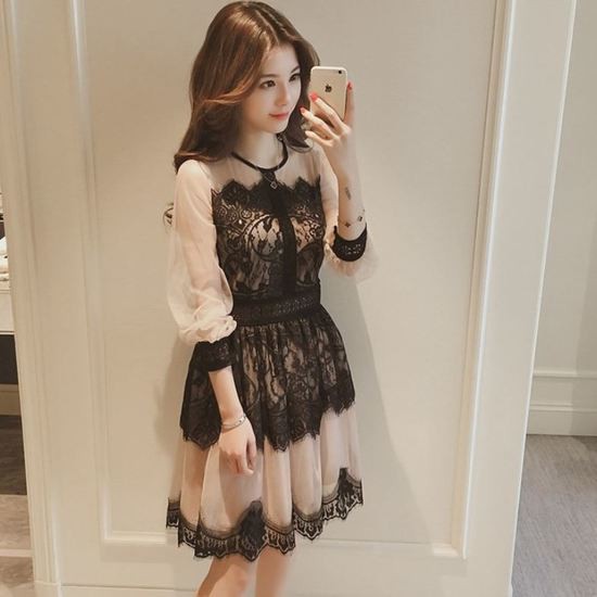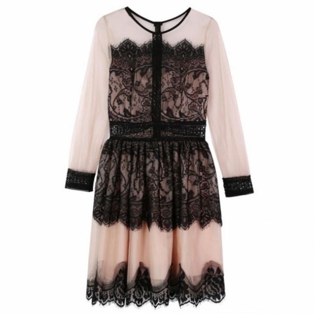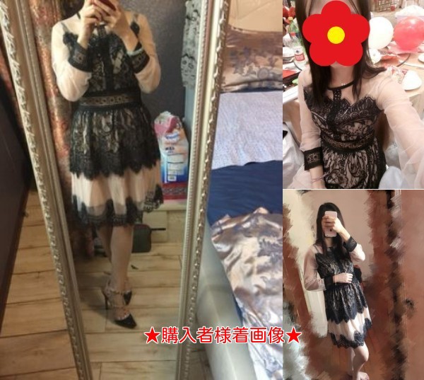 レースのワンピースは、ベージュとブラックのかわいいデザインです☆