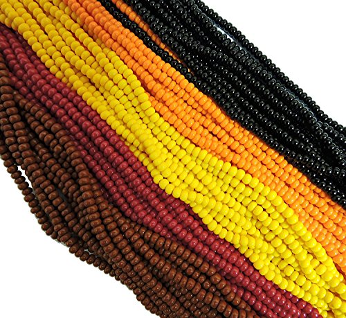 - Mix includes 6 strands of each opaque color: Light Orange, Orange, Dark Red, Brown and Black. Packaging is by Rockin Beads.