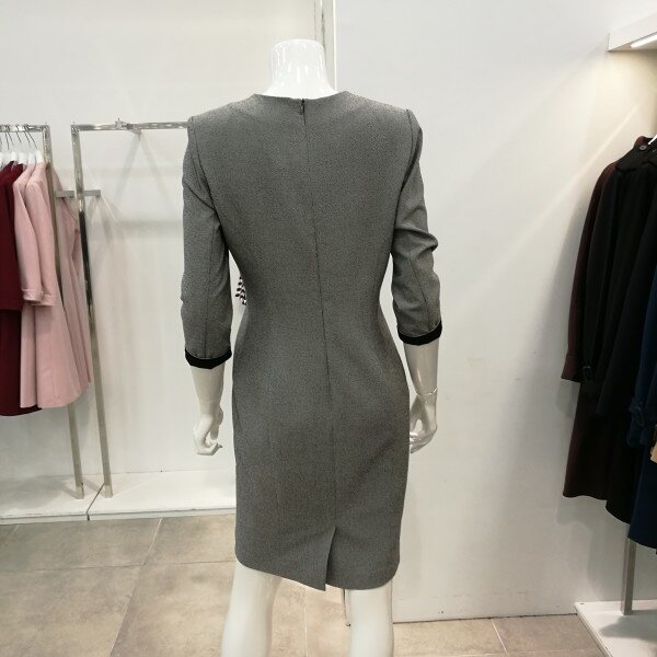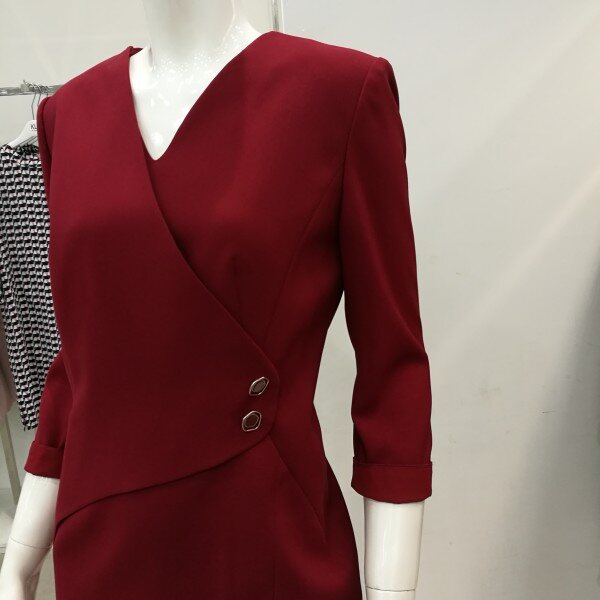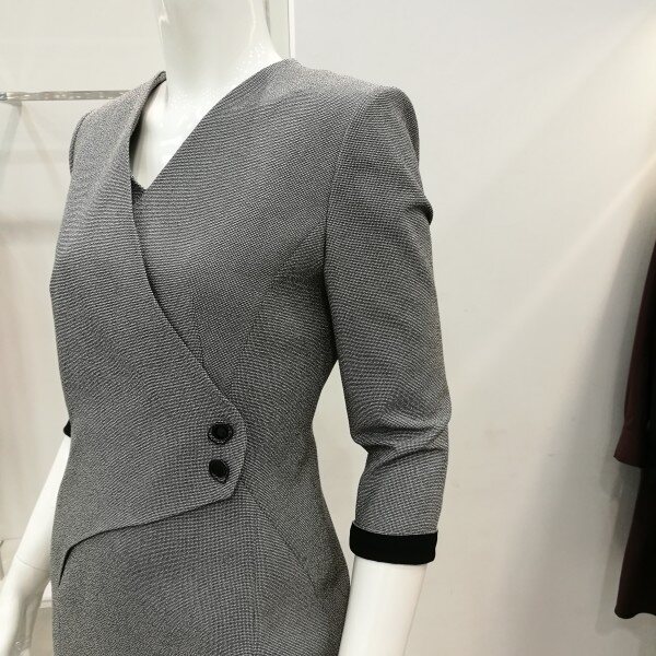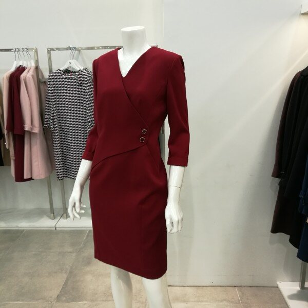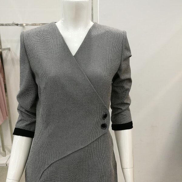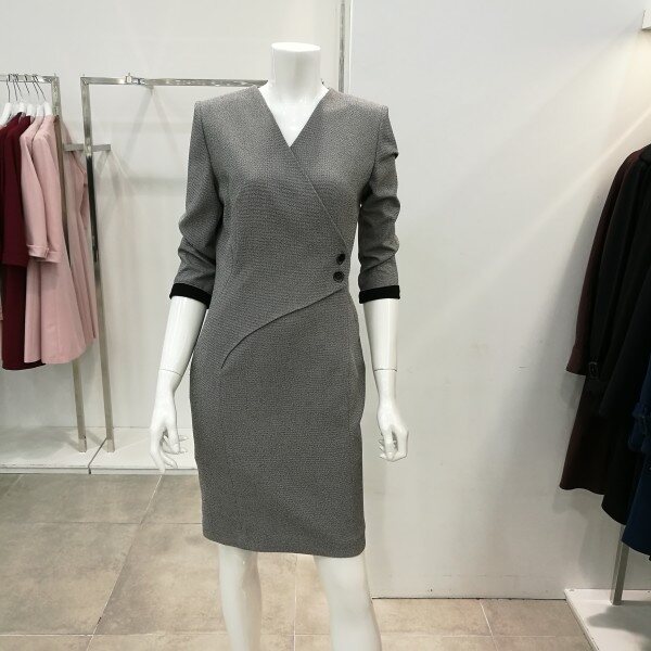 V넥이라 심플하고 목이 길어보이는 효과가 있다. 상체부분 랩으로한겹 더있어 가슴부분 커버되고스판력좋아서 슬림하게 떨어졌지만 편하게 입을 수 있다.