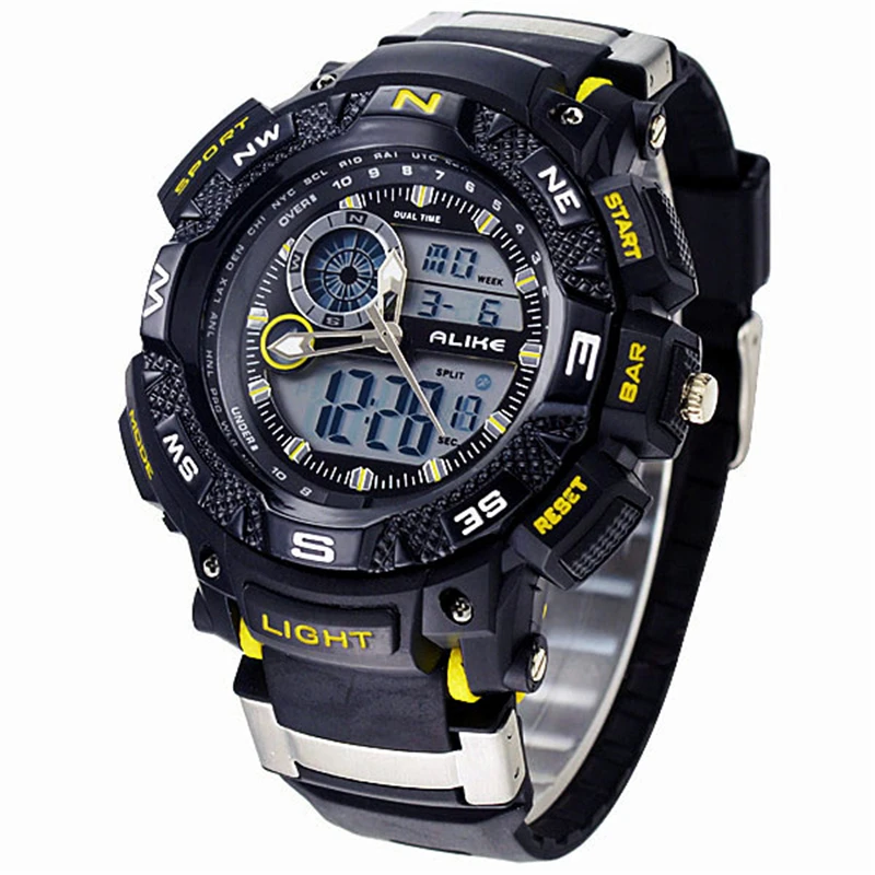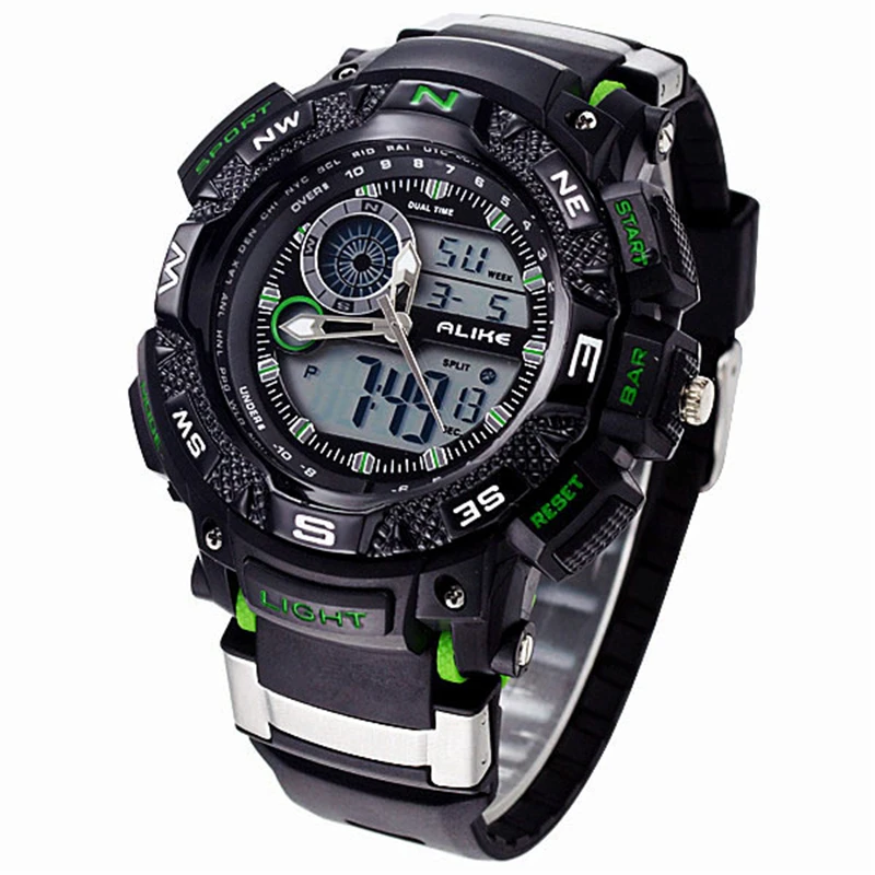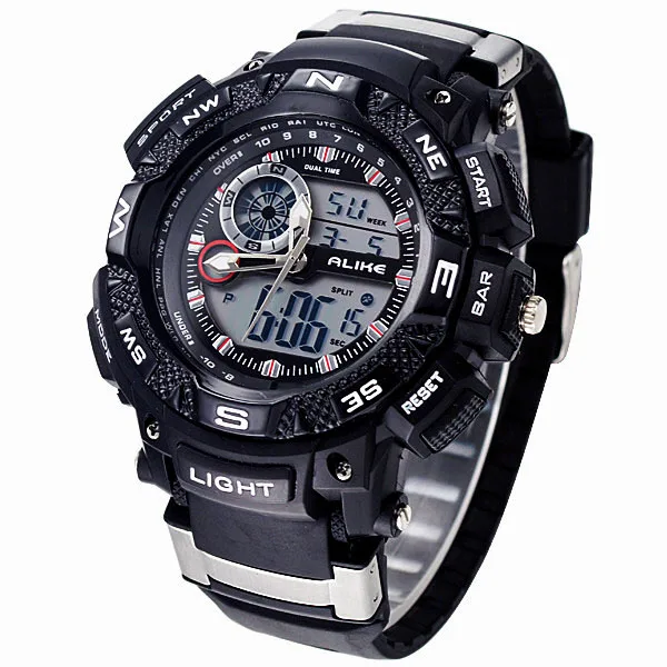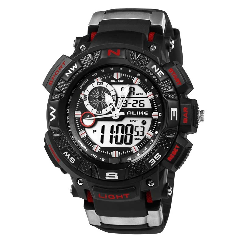 Feature:Alarm,Back Light,Water Resistant,Shock Resistant,Stop Watch,Complete Calendar,Swim,Auto Date,LED display
